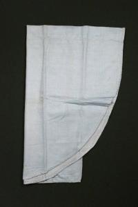 Il mantello di cotone azzurro è sfoderato ed ha il bordo stondato.