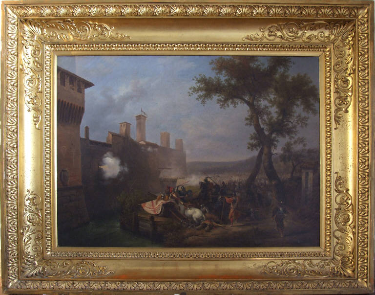 - NOTIZIE STORICO CRITICHE Probabilmente non si tratta del dipinto realizzato per il marchese Antonio Visconti d'Aragona presentato alla rassegna braidense del 1834 ma, secondo la storica Sandra Pinto, di una versione successiva eseguita per Stefano Stampa che poi legò all'Accademia nel 1900. La tela ripropone la stessa scena del 1834 (realizzata su commissione del marchese Antonio Visconti d'Aragona) che ottenne favore unanime da parte dei critici contemporanei, un paesaggio d'invenzione mutuato dalle vicende storiche come era già avvenuto con la "Disfida di Barletta", che ne costituisce l'esempio precedente. Dell'opera venne lodata la semplicità compositiva animata dall'episodio della battaglia descritto in modo assai veritiero, come riporta "Il Ricoglitore italiano e straniero": "Semplice com'è la composizione del paese di questo quadro, prende anima dagli episodi del fatto d'arme, (...) da poersi dire che l'Azeglio non avrebbe potuto, (..), meglio descriverlo".
