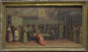 - NOTIZIE STORICO CRITICHE La tavola è una copia dell'originale custodito presso la Gemaldegalerie di Berlino, la cui origine è controversa, giacché si tratta del frammento di una predella per la quale sono stati ricercati collegamenti con opere maggiori. Il dipinto venne probabilmente eseguito in ambito fiorentino nel Cinquecento.
