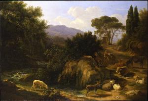 - NOTIZIE STORICO CRITICHE Il dipinto potrebbe essere stato realizzato quando il d'Azeglio soggiornò a Roma quando, come scrive il pittore al fratello Roberto, "il genere moderno più di moda sono le vedute fatte tal e qual dal vero con vacche e vaccari". E' più probabile, però, che la tela venne realizzata nei primi anni Trenta, sotto l'influenza dei pittori fiamminghi, fra cui Hendrick Woogd e Martin Verstappen, che in occasione dell'Esposizioni braidensi presentavano alcune vedute della campagna romana con mandrie. Tra l'altro, proprio con il secondo, il d'Azeglio aveva trascorso al suo fianco il periodo di apprendistato romano. Come è tipico della prassi azegliana, all'opera sono riferibili numerosi disegni preparatori schizzati sui taccuini (oggi conservati al Museo Civico di Torino) che spaziano dalle annotazioni sulla vegetazione agli studi di animali, mucche e asini.