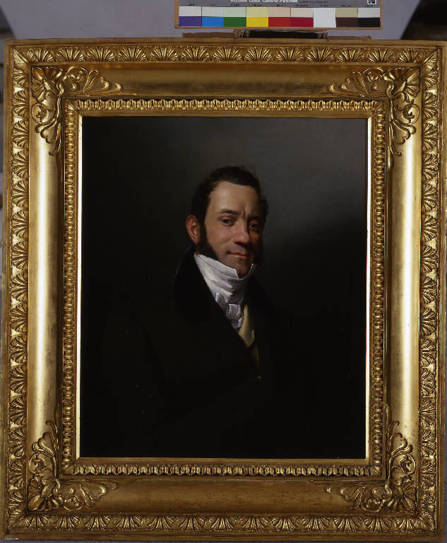 - NOTIZIE STORICO CRITICHE Sebbene nei vari inventari il dipinto venga registrato di autore anonimo, per le ssue peculiarità stilistiche è più probabile che si possa trattare di un ritratto tardo (1840-1860 circa) del pittore Giuseppe Molteni. Quì l'artista, abbandonato il ritratto istoriato, si affida ad una stesura più sobria e raffinata, in cui il contrasto tra i toni chiari e scuri ed una pittura intessuta di colpi di luce, connotano il ritratto di un forte realismo.