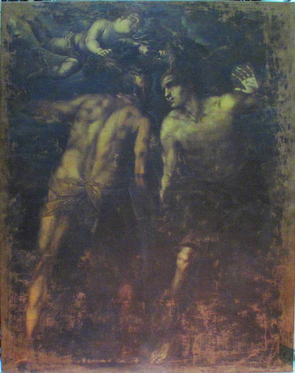 Due figure maschili e un angelo. UOMINI CON ANGELO
