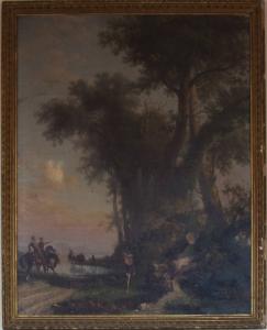- NOTIZIE STORICO CRITICHE La piccola tela è il bozzetto preparatorio del famoso dipinto "Muzio Attendolo Sforza getta la scure" acclamato all'Esposizione braidense del 1843: sulla base di questa indicazione, se ne propone una datazione intorno ai primi anni Quaranta dell'Ottocento. Tra l'altro, l'analisi dei disegni conservati al Museo Civico di Torino, permette di datare le prime prove della grande tela intorno al 1831, come dimostra il disegno n. 27, "Studi per l'Attendolo". Rispetto all'opera del 1843, il dipinto in questione varia soprattutto la scena con un gruppo di armati che si allontana. Della fortunata tela segnaliamo più versioni successive: nel 1844 quella presentata alla Promotrice Torinese; nel 1845 quella acquistata da Don Marino Torlonia e altri due bozzetti comparsi alla mostra monografica di Torino nel 1866 appartenenti a Luisa d'Azeglio.