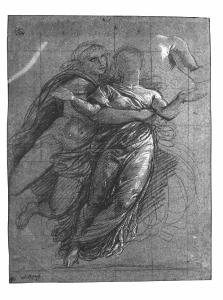 - NOTIZIE STORICO CRITICHE Il disegno è uno studio preparatorio per l'episodio di "Psiche trasportata in cielo da Mercurio" dipinto ad affresco in una delle quattro lunette (vele della volta) della Rotonda di Villa Reale a Monza. Il ciclo comprende altri episodi (medaglione della volta e quattro sovraporte) relativi alla storia di Amore e Psiche. Mentre la critica precedente riteneva che l'esecuzione del ciclo da parte dell'Appiani dovesse collocarsi tra il 1789 e il 1790, ora si propende per una datazione fra il ritorno dal viaggio del 1791 e l'inizio dei lavori per gli affreschi in Santa Maria presso San Celso. L'episodio qui descritto rivela un'evidente derivazione dal prototipo di Raffaello nella Loggia di Psiche alla Farnesina.