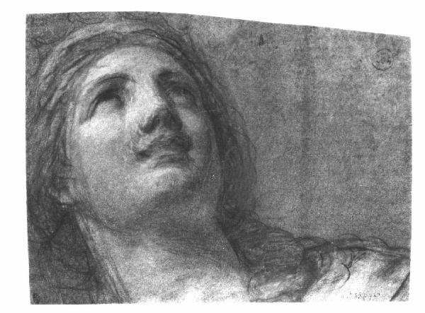 - NOTIZIE STORICO CRITICHE Il disegno è uno studio particolarmente accurato e rifinito di una figura femminile in atto di volgere lo sguardo verso l'alto. Problematica risulta l'identificazione del personaggio rappresentato, recante una corona sopra i capelli sciolti lungo le spalle (forse una santa regina), non avendo individuato l'opera a cui tale studio si riferisce. Al di là delle suggestioni reniane, si riscontrano evidenti affinità stilistiche ed iconografiche con tipologie femminili affrescate da Appiani nei diversi interventi in Palazzo Reale di Milano. Il disegno faceva parte della collezione privata Vallardi, che raccolse in un album di formato atlantico ben 344 disegni di Appiani. L'album pervenne all'Accademia di Brera nel 1875 per donazione di E. Cernuschi, allora residente a Parigi dove lo acquistò nel 1856-1860 (periodo in cui a Parigi si tenero aste di vendita di opere di provenienza Vallardi).