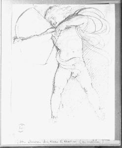 - NOTIZIE STORICO CRITICHE Il disegno rappresenta un amorino nell'atto di tirare con l'arco. Il tema è vicino al repertorio eseguito da Appiani durante la sua collaborazione con la bottega dei Maggiolini ai quali fornì molti disegni. Lo stile e la tecnica fanno propendere per una datazione intorno agli anni 1790; potrebbe infatti essere uno studio per "Amore in atto di ferire Giove addormentato" di cui esiste un disegno preparatorio conservato al Castello Sforzesco di Milano. Il disegno faceva parte della collezione privata di Giuseppe Vallardi che, intorno al 1820 ordinò in album ben 344 disegni di Appiani. L'album, di formato atlantico, pervenne all'Accademia di Brera nel 1875 per donazione di E. Cernuschi, allora residenta a Parigi, dove lo acquistò nel 1856-1860 (periodo in cui a Parigi si tennero aste di vendita di opere di provenienza Vallardi).