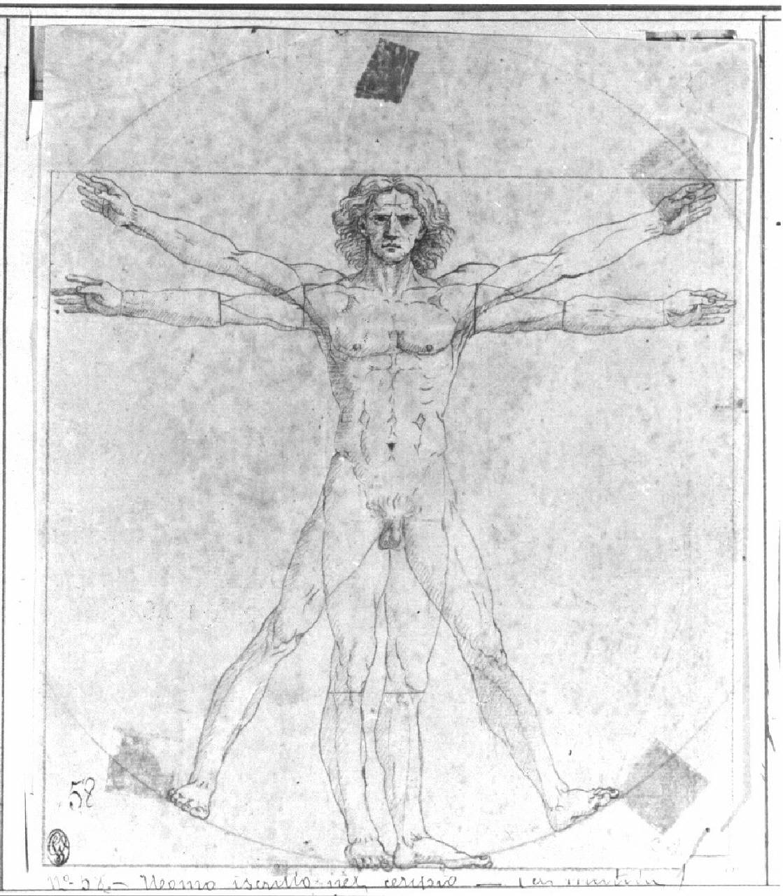 Uomo inscritto in un cerchio. figura maschile
