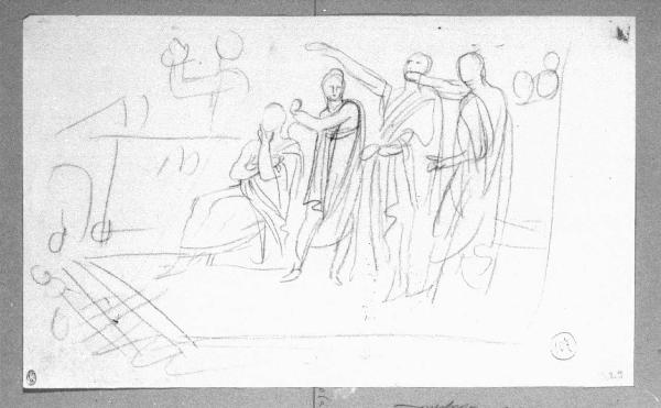 - NOTIZIE STORICO CRITICHE Il disegno è uno studio per una scena tratta dall'antica storia romana. Lo stile, sintetico nella resa lineare e il tema, fanno pensare che si tratti di uno studio per uno degli episodi (probabilmente la "Continenza di Scipione") relativi alla decorazione della Sala della Lanterna di Palazzo Reale.