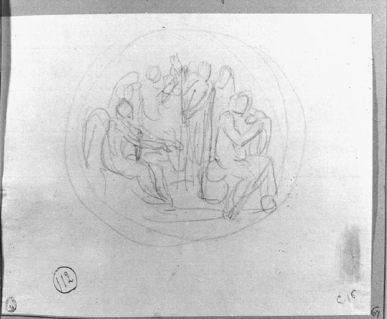 - NOTIZIE STORICO CRITICHE Il disegno è un primo studio per la medaglia commemorativa del fallito attentato a Napoleone, avvenuto il 24/12/1800, costituendo il termine post quem per la datazione. Il soggetto è risolto attraverso una composizione col Tempo e le Parche. La medaglia venne incisa da Luigi Manfedini e coniata presso la Zecca di Milano. L'iconografia tornerà nei "Fasti Napoleonici", ma distesa nel campo rettangolare della tela e arricchita da ulteriori particolari.