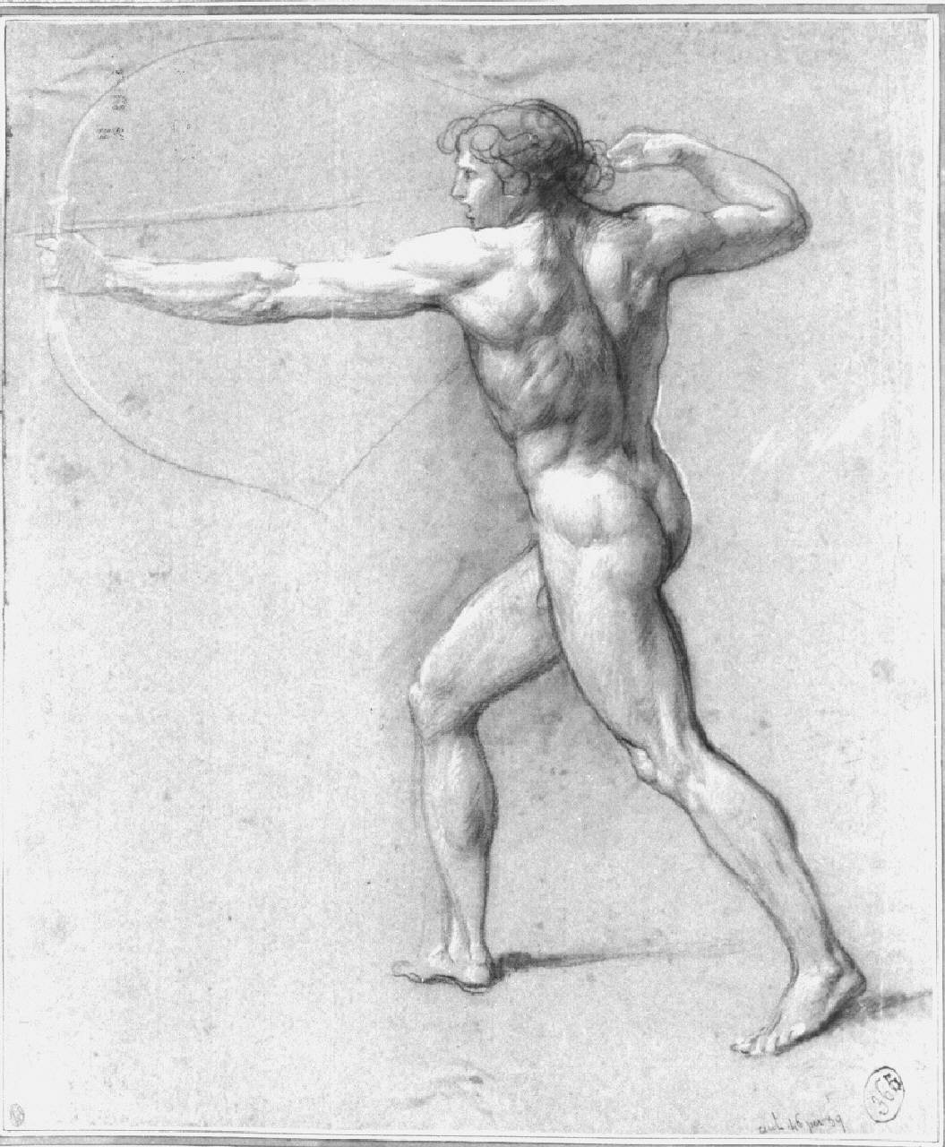 - NOTIZIE STORICO CRITICHE Il disegno è uno studio di uno dei tre guerrieri ignudi che scacciano i vizi nel sipario del Teatro Patriottico (poi dei Filodrammatici), eseguito da Appiani nel 1798 e rappresentante la "Virtù che fuga il Vizio". L'intero repertorio iconografico è caratteristico del periodo della Repubblica Cisalpina.