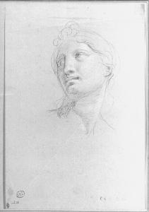 - NOTIZIE STORICO CRITICHE Il disegno è lo studio del volto della Musa Euterpe per l'affresco "Il Parnaso" eseguito da Appiani nel 1811 nella Villa Reale di Milano. Lo stile presenta le caratteristiche proprie di questa fase matura ed ultima della grafica di Appiani.\n\nAl recto: verificare.\nAl verso, studio di figura femminile per lo stesso soggetto presente al recto.