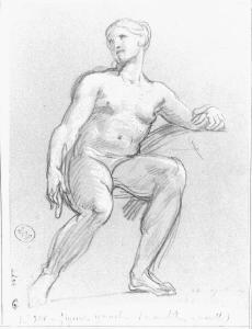 - NOTIZIE STORICO CRITICHE Il disegno è lo studio della Musa Euterpe per l'affresco "Il Parnaso" eseguito da Appiani nel 1811 nella Villa Reale di Milano. Lo stile presenta le caratteristiche proprie della fase matura e ultima della grafica del Maestro.\n\nAl verso schizzo raffigurante un ginocchio (parziale).