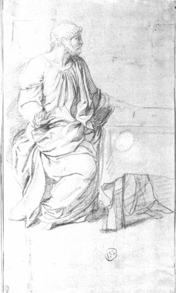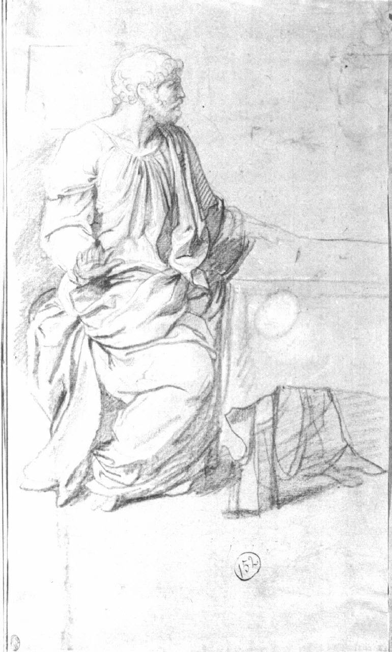 - NOTIZIE STORICO CRITICHE Il disegno è uno studio accurato per il dipinto rappresentante "La Cena in Emmaus", eseguito da Appiani tra il 1788 e il 1796 per la Comunità degli Osti (o Pia unione dei camerieri, cuochi ed inservienti). Lo studio si compone di tre fogli accostati, di cui quello in oggetto raffigura l'Apostolo alla destra di Cristo.