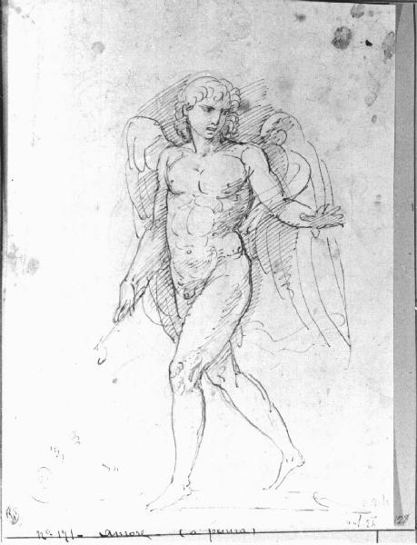 - NOTIZIE STORICO CRITICHE Il disegno, che rappresenta Cupido in atto di camminare, non è riferibile a nessuna opera eseguita da Appiani, ma lo stile e il modulo della figura ricordano da vicino opere intorno al 1790-1795 in cui appare lo stesso soggetto.