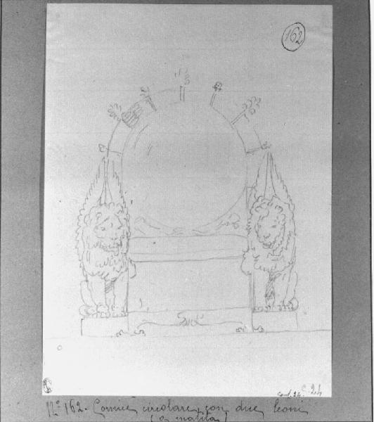 - NOTIZIE STORICO CRITICHE Il disegno presenta lo studio accurato di un trono (?), affiancato da due leoni alati, decorato con motivi a palmetta. Il disegno rientra pienamente nel gusto decorativo neoclassico affermatosi nel primo decennio del XIX secolo.
