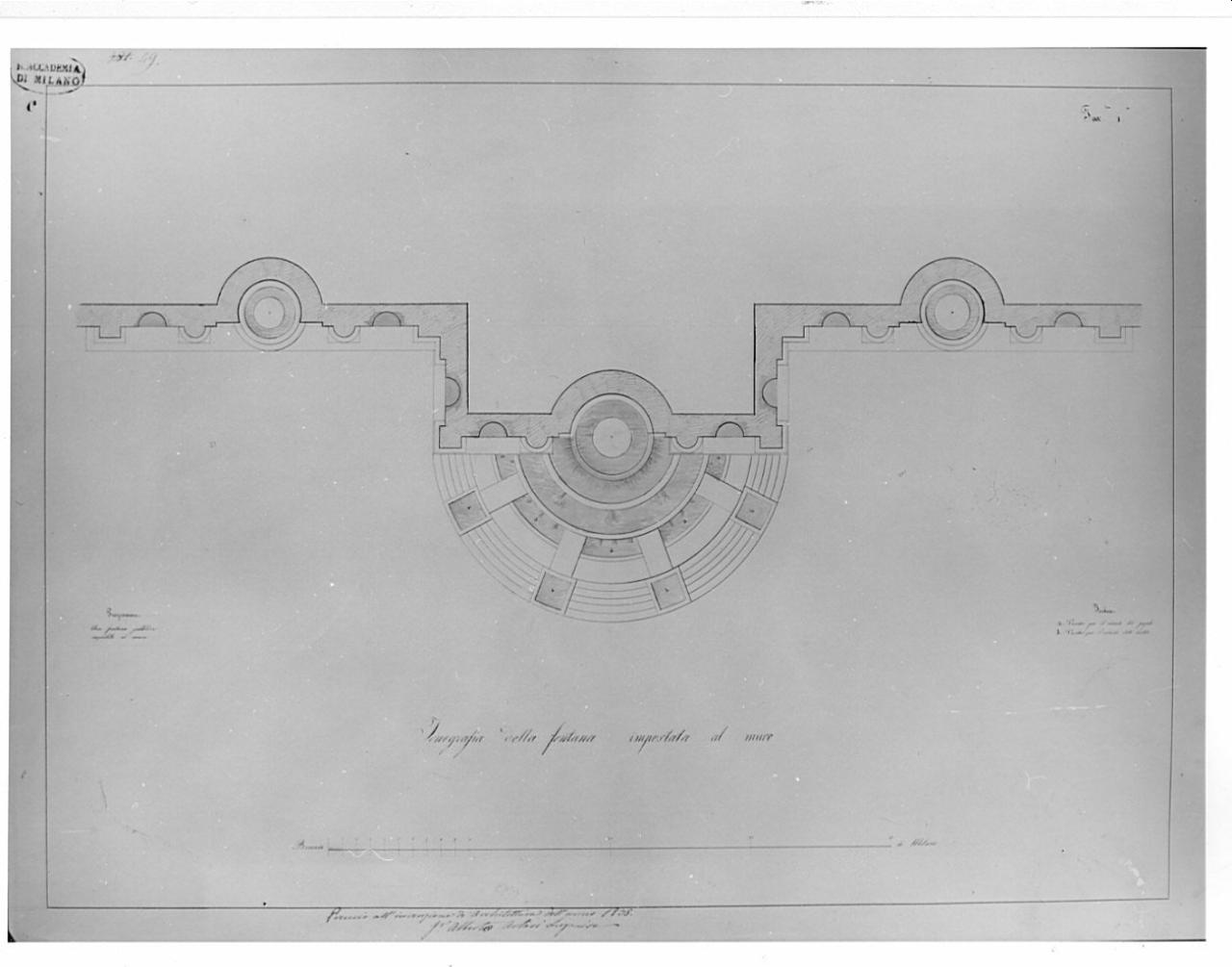 Progetto di una fontana pubblica impostata al muro. architettura: fontana (pianta)