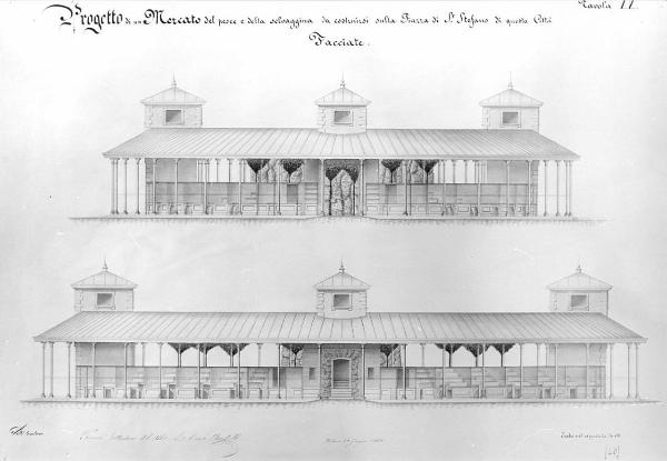 Mercato del pesce e della selvaggina da costruirsi sulla piazza S. Stefano. architettura: mercato del pesce e della selvaggina (prospetti)