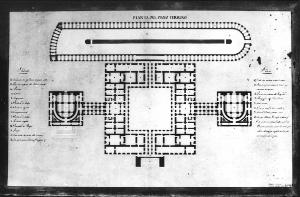 Un Palazzo Reale per una Città in pianura proporzionato alla dignità e al regolare servizio di una corte cospicua, ed all'alloggio contemporaneo di più d'una Testa Coronata. Lo stile dell'architettura sarà dei migliori tempi Greci e Romani. architettura: palazzo reale (pianta)