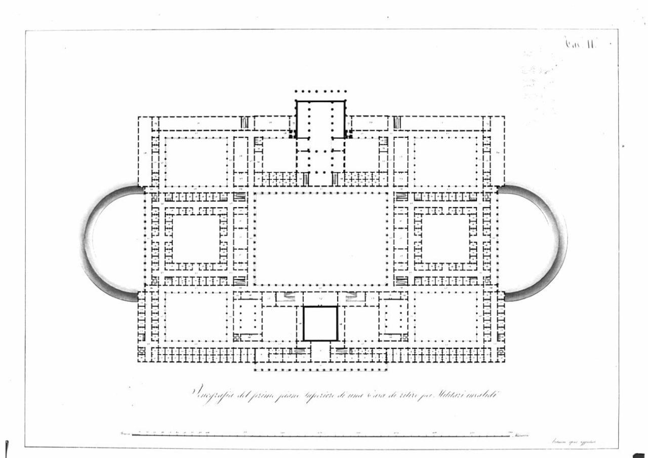 Una casa di ritiro per militari e invalidi capace di 1500 soldati comuni e 300 ufficiali. architettura: casa di ritiro per militari invalidi (pianta del primo piano)
