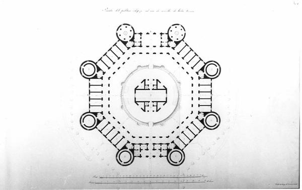 Pubblico edificio ad uso di macello in un'area non maggiore di 120000 piedi parigini. architettura: Macello Bovino (pianta)