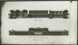 Un casino per una società filodrammatica e filarmonica. architettura: casino per filodrammatica (sezione e prospetto)