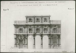 Completamento del Palazzo di Piazza Mercanti, detto de' Giureconsulti, in relazione all'apertura della nuova via di giunzione tra la detta piazza de' Mercanti ed il Cordusio.... architettura: palazzo di Piazza dei Mercanti di Milano (prospetto)