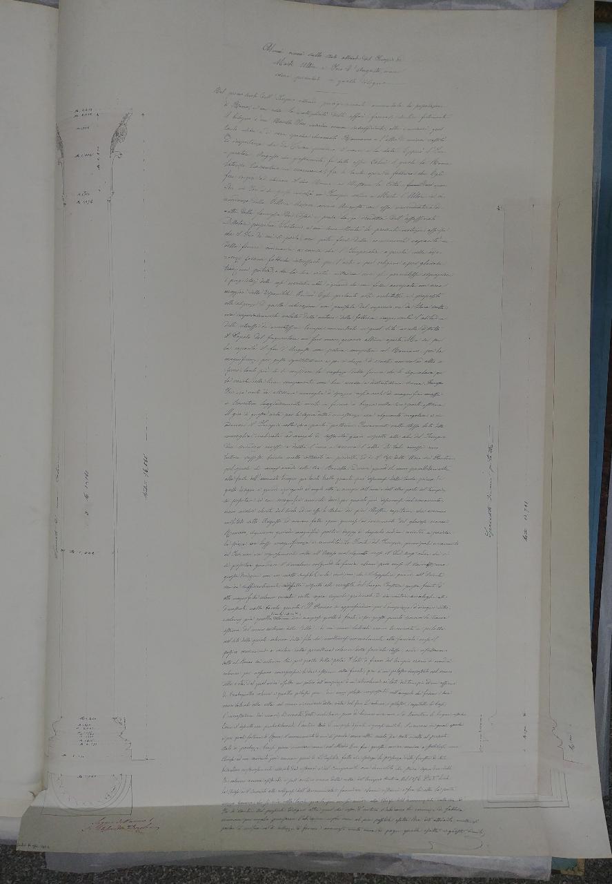 - NOTIZIE STORICO CRITICHE Il disegno appartiene ad una serie di quattro tavole redatte da Giacomo Moraglia come saggio del primo anno di pensionato a Roma (Atti dell'I.R. Accademia di Belle Arti, 1817, p. 50). Il giudizio della commissione di architettura fu il seguente: "Degni di lode per la diligenza e la nettezza del disegno e dell'ombreggiatura..." (AAB 30/ X/ 1816, cart. Carpi E. III, 3). Gaicomo Moraglia vinse il concorso di II classe per gli ordini architettonici nel 1811 (Atti dell'I.R. Accademia di Belle Arti, 1811, p. 56) e quello per l'invenzione e la prospettiva nel 1812 (Atti..., 1812, pp. 52, 54). Nel 1814 venne esposto a Brera il progetto per un "Bagno pubblico" e un "Casino di società" ("Atti..., 1814, p. 62). Il foglio è rilegato entro il volume A I 188, contenente vari saggi di pensionato romano svolti tra il 1812 e il 1820. Nel 1817, 1818, 1819, 1820 vennero esposti a Brera i saggi del I, II, III e IV anno di pensionato romano di Giacomo Moraglia (cfr. schede seguenti).