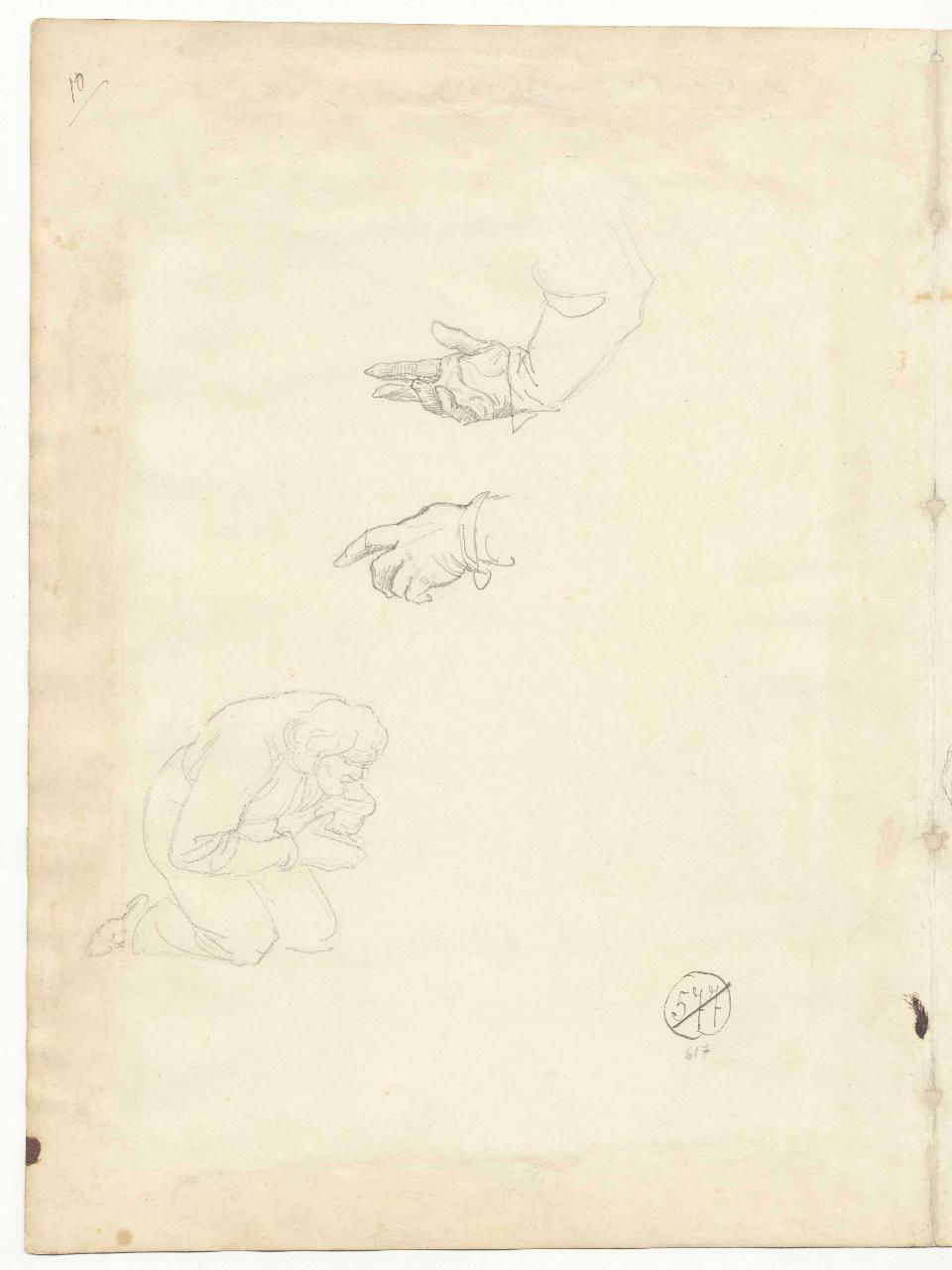 Studio di figura in ginocchio e mani. Figura maschile e mano