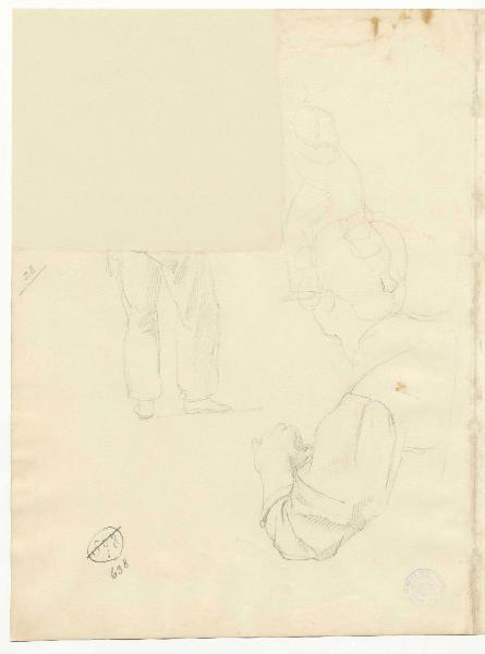 Schizzo di mezza figura femminile di scorcio e da tergo ed altri pensieri vari. Figure femminili