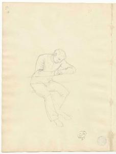 Schizzo d'uomo seduto che disegna. figura maschile seduta
