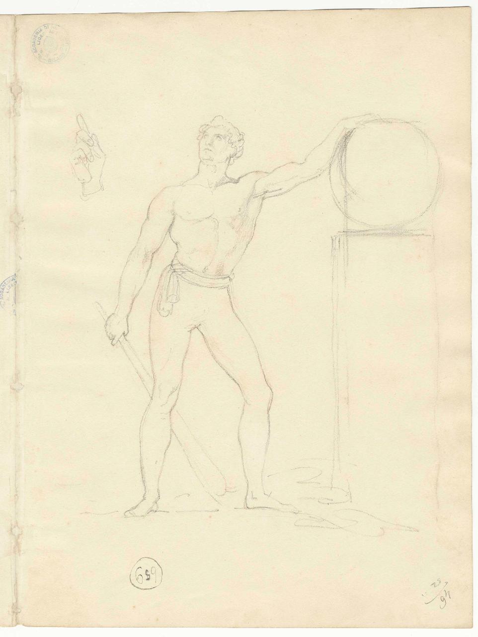 Idea per un Ercole (?) e mano. figura maschile e mano