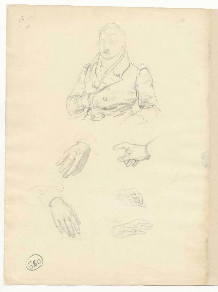 Studio per ritratto virile e mani. figura maschile e mani