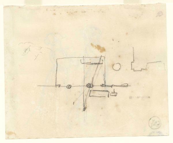 Una pianta architettonica e schizzo di testa (verso). pianta architettonica e testa