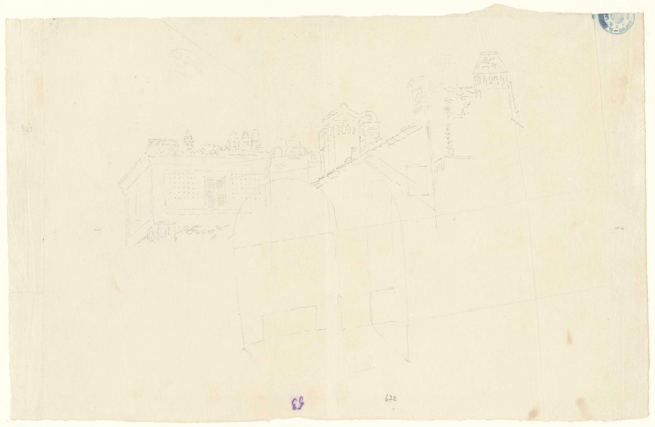 Schizzo di architettura (recto) (già Schizzo di paesaggio - Samek). paesaggio