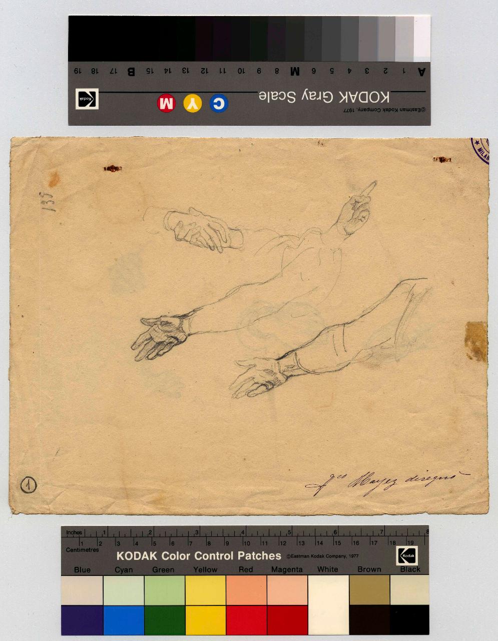 Studi di mani e di braccia | Studi di mani, dita e braccio piegato. mani