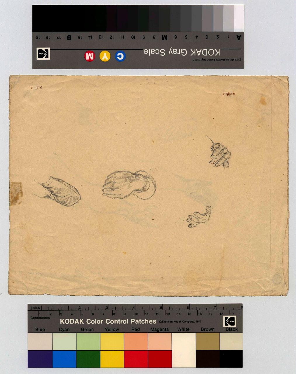 Studi di mani, dita e braccio piegato. mani