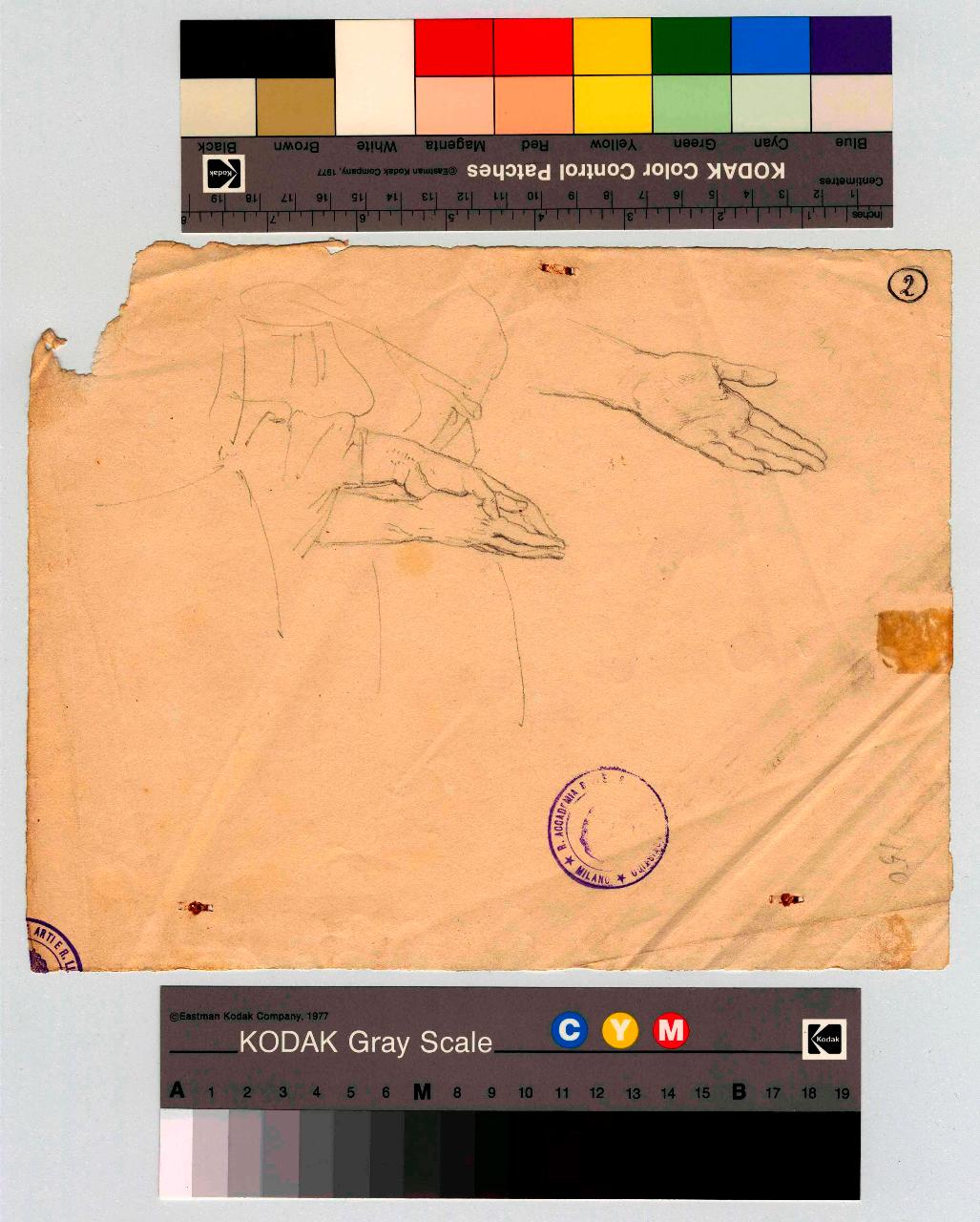 Studio di mani che pregano. Studio di mano distesa. mani