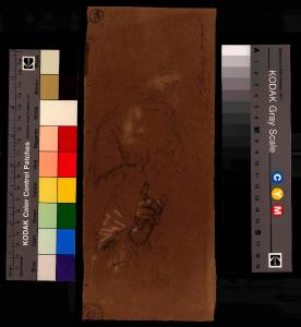 carta marroncina/ carboncino/ gessetto bianco