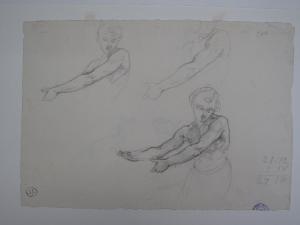 Tre studi di nudo giovanile (nella stessa attitudine)/ Schizzi di braccia. nudi maschili e braccia