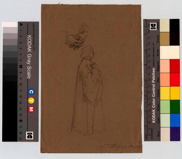 Figura togata alla veneta; Studio di mani. figura maschile, mani