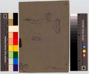 Busto d'uomo col braccio destro teso e il sinistro piegato e studi di mani. figure maschili e mani