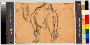 Dromedario visto di schiena. dromedario