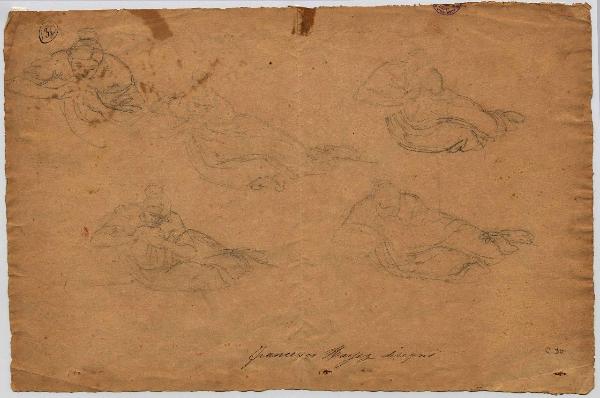 Studio di donna sdraiata che beve a una coppa. figure femminili | figure maschili, mani