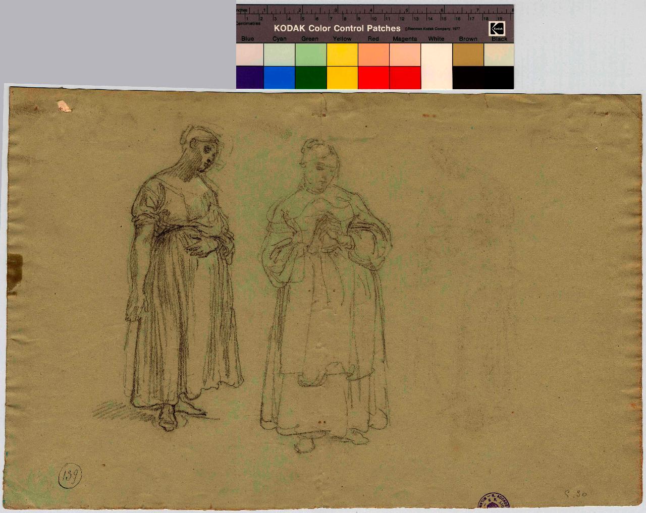 carta verdina vergata/ matita/ carboncino/ gessetto