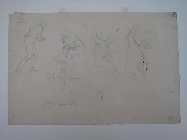 "Studi di opportunità"; figure in svariate attitudini/ Figure d'uomini che bevono ed accennano; studi per la "Sete dei Crociati". figure femminili, figure maschili, mani/ figure maschili, Sete dei Crociati