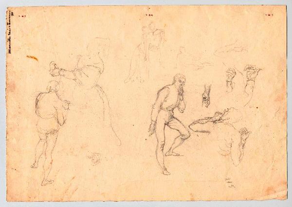 Schizzi vari di figure. figure maschili e femminili, mani