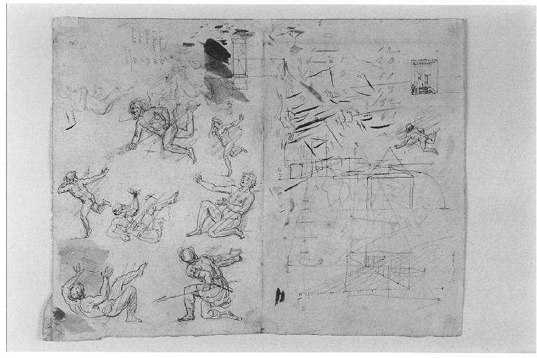 matita, penna, inchiostro grigio acquerellato, su carta bianca