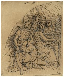 - NOTIZIE STORICO CRITICHE Fra 1791 e 1792, prima di lavorare sulle lunette e sui pennacchi di Santa Maria presso San Celso, Appiani cercò di recuperare alcuni affreschi di Cerano presenti nella chiesa, e ormai deperiti, con degli interventi di ripristino. Nello specifico, affrescò, secondo lo stile dell'artista seicentesco, un puttino e una figura nella prima campata di sinistra e gli angeli musicanti in controfacciata (Leone 2015, p. 45).\nI due disegni (B 50/I e B 50/II) sono studi preparatori per le due lunette della controfacciata. La piccola dimensione dei fogli lascia intuire che si tratti dei primi abbozzi dell'artista, utilizzati per studiare ed elaborare gli affreschi deteriorati. Appiani si impegnò nel replicare con esattezza lo stile dei dipinti murali, studiandone gli effetti luministici e l'equilibrio compositivo. Strettamente connessi ai due fogli, sopravvivono i cartoni che raffigurano l'Angelo musicante con viola, conservato presso la Galleria d'Arte Moderna di Milano (inv. 7036), e gli Angeli musicanti del Civico Gabinetto dei Disegni del Castello Sforzesco (Agg. 771).