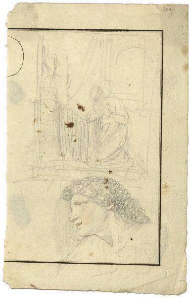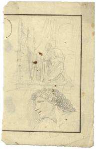 Studio per scena sacra e testa femminile di profilo