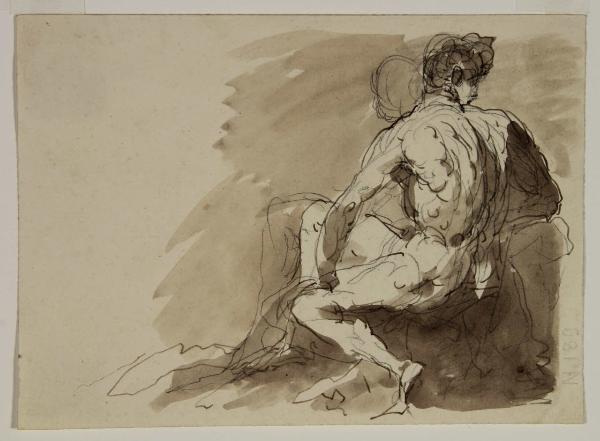 Studio di uomo nudo seduto di spalle. Studio di uomo nudo seduto di spalle